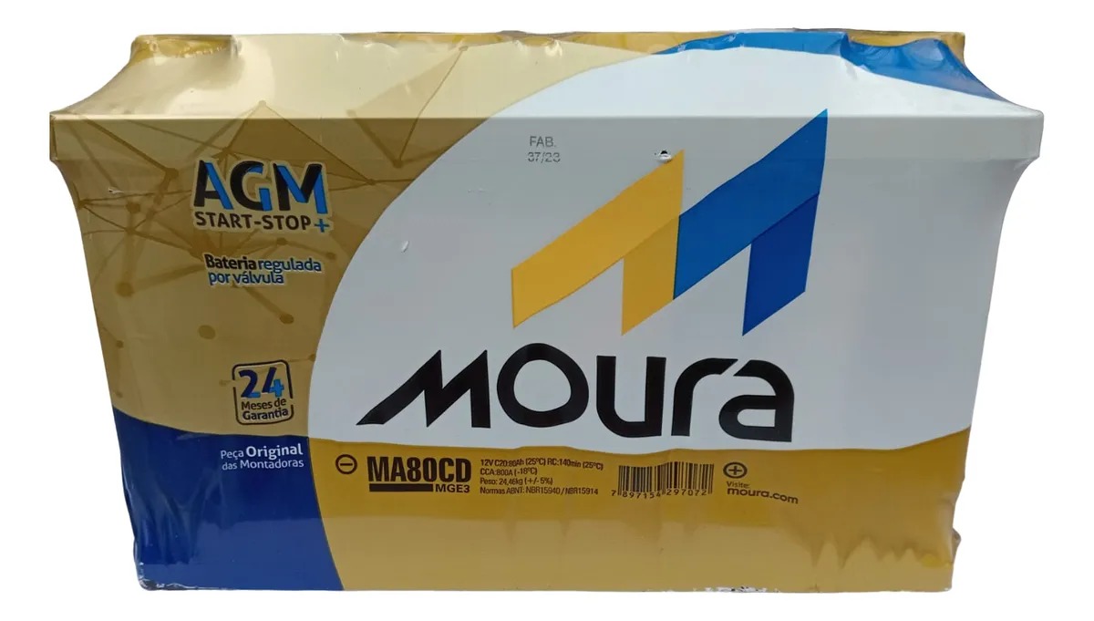 Batería Moura 80amp Start Stop AGM libre de mantenimiento. Distribuidor oficial en Mendoza. Tecnología AGM para autos premium de alta gama.